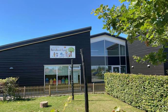 Børnehuset Lyset er bygget i 2012. Her er højt til loftet og lyse og venlige lokaler og en stor legeplads, der omgiver hele huset.