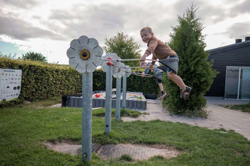 Vi har en stor legeplads, hvor der er plads til alle slags lege. Der er plads til fordybelse i de små legegrupper, samtidig med at der er plads til de store legefællesskaber. Vi kan gynge 'helt op i himlen', lave sandkager i sandkassen, lege med vand og jord i mudderhjørnet, spille fodbold på grusbanen, køre en tur på cykelbanen, lege i piratskibet, klatre højt op i klatrestativet, bage fladbrød i bålhuset og tage en tur på rutsjebanen sammen med vennerne.