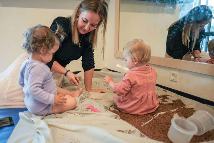 Kl. 10.30 Vuggestuen spiser frokost. Herefter puttes børnene, (de små børn sover to gange om dagen).